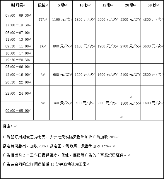 河南廣播電視臺新聞廣播(FM95.4、AM657) 標準廣告刊例價 (2016年1月1日起執(zhí)行)