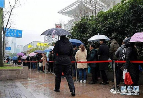 下雨也擋不住人們排隊(duì)的熱情