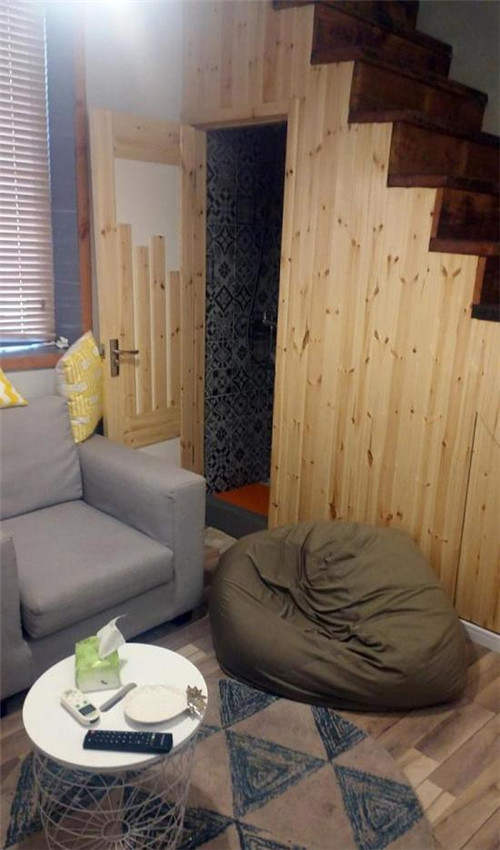 室內(nèi)總面積大概20平方米,被分隔為上下兩層。房屋雖小,家具及電器卻十分齊全。一樓有冰箱、洗衣機、電視等家電,一人坐的沙發(fā)和懶人沙發(fā)供休閑,布置緊湊,一角的衛(wèi)生間可容納一人洗漱;二層則放置了一張雙人床和一張氣墊床?!俺肆酪路环奖悖溆嗟捏w驗我們都挺滿意的”,兩人告訴記者,“民宿更有老上海味道,退房也只需要把鑰匙放在門口的箱子里,非常方便?!?/font>