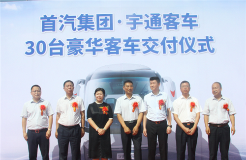 8月4日上午,鄭州宇通客車股份有限公司(簡稱為:宇通客車)與北京首汽(集團(tuán))股份有限公司(簡稱為:首汽集團(tuán))在首汽集團(tuán)舊宮停車場舉行了交車儀式,30輛宇通豪華客車正式交付。首汽集團(tuán)常務(wù)副總經(jīng)理高捷、宇通集團(tuán)黨委副書記李遠(yuǎn)征等領(lǐng)導(dǎo),以及媒體代表共同見證了這一重要時刻。