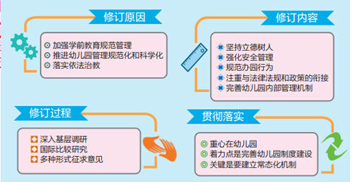 隨著經(jīng)濟(jì)社會的發(fā)展,教育改革的不斷深入,學(xué)前教育事業(yè)發(fā)展迅速,幼兒園教育的內(nèi)外環(huán)境和條件也發(fā)生了巨大變化。因此,《規(guī)程》需要在新的形勢下進(jìn)行調(diào)整,不斷推進(jìn)幼兒園內(nèi)部管理和辦園行為的規(guī)范化,促進(jìn)幼兒園保教質(zhì)量不斷提升?!?nbsp;