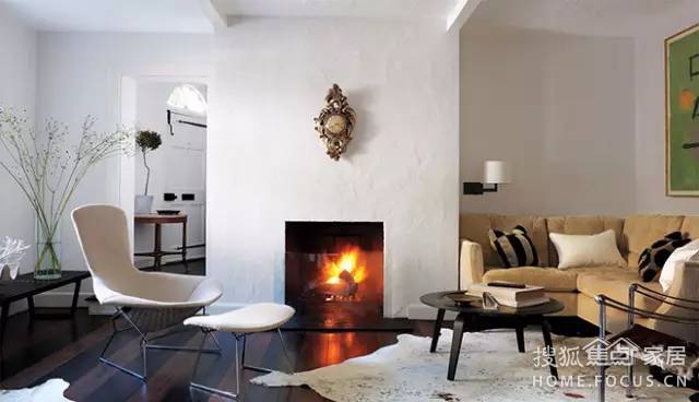 幾個沙發(fā)和壁爐圍在一起,看上去暖暖的。另外,壁爐也能起到輔助照明的作用。