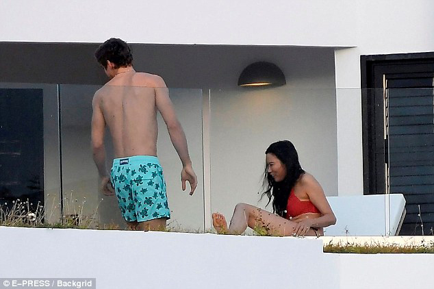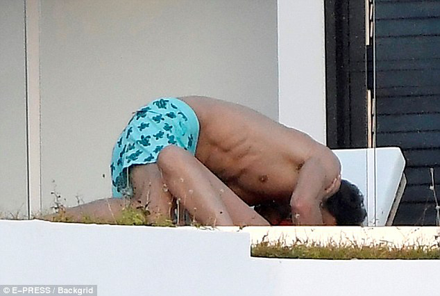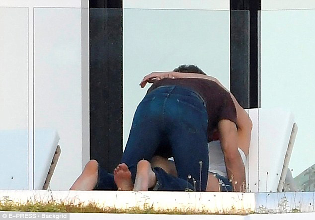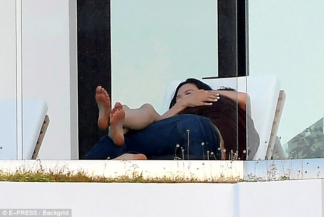 鄧文迪和小男友在露臺躺椅上抱在一起。