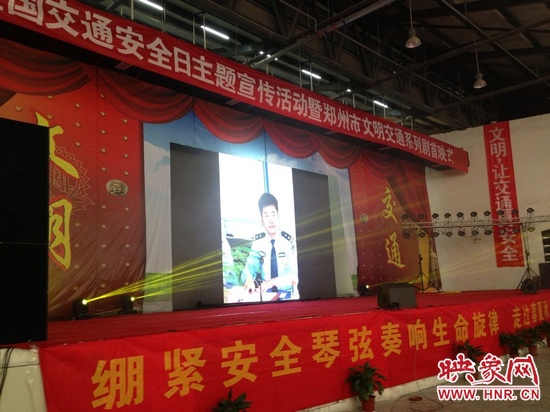 12月22日上午,12·2全國(guó)交通安全日主題宣傳活動(dòng)暨鄭州市文明交通系列劇首映式在鄭州航空港區(qū)富士康科技園舉行。首映式將展示5部倡導(dǎo)文明交通的微電影,倡導(dǎo)交通參與者“摒棄交通陋習(xí),安全文明出行”,河南省文明交通形象大使,河南交通廣播主持人南方,河南交通廣播主持人王驍主持了首映式。