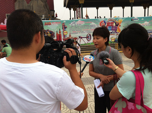 鄭州世紀歡樂園外聯(lián)部經(jīng)理劉倩倩說能陪孩子一起游園,完成心愿,她很欣慰。(出錄音)