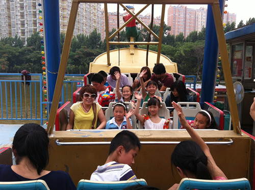 一進入園區(qū),孩子們就歡呼著向旋轉(zhuǎn)木馬跑去,我們的記者和孩子們一起坐在旋轉(zhuǎn)的馬背上,和孩子們一起沉浸在節(jié)日的歡樂中。