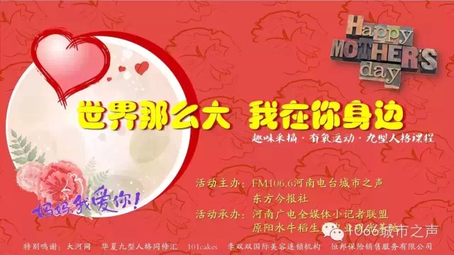 為此,F(xiàn)M106.6河南電臺(tái)城市之聲特別舉辦“世界那么大,我在你身邊”母親節(jié)活動(dòng)。我們還為媽媽們準(zhǔn)備了一份母親節(jié)禮物,九型人格課程“懂她比愛她更重要”!這份禮物不重,但很暖心。