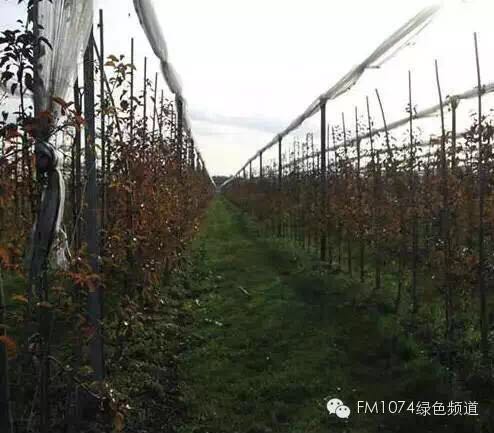 在史蒂凡的果園看到,一排排3年生的蘋(píng)果樹(shù)整齊排列,十分規(guī)整。