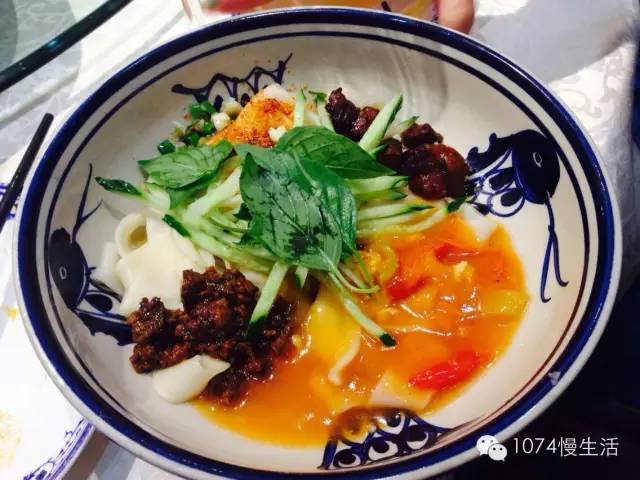 先來一道涼拌的讓大家看看。首推這道:啥?猛一看像褲帶面。NO!不是涼拌的嘛?難道是涼皮?No No No No No~~~這不叫涼皮,這叫釀皮,口感更扎實,面香更濃,尤其里面這芝麻醬,絕了,用的是不榨油的芝麻直接制作出來的芝麻醬,那香濃,回味無窮,成本高,味道好!一位鄭州老饕都被這碗釀皮傾倒了,說夏天最美的事就是來店里啥都不點,單就吃這一碗釀皮走人,愜意的很!