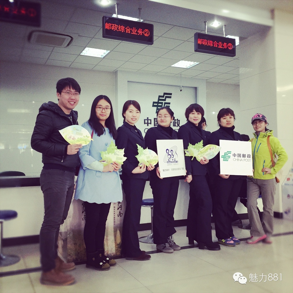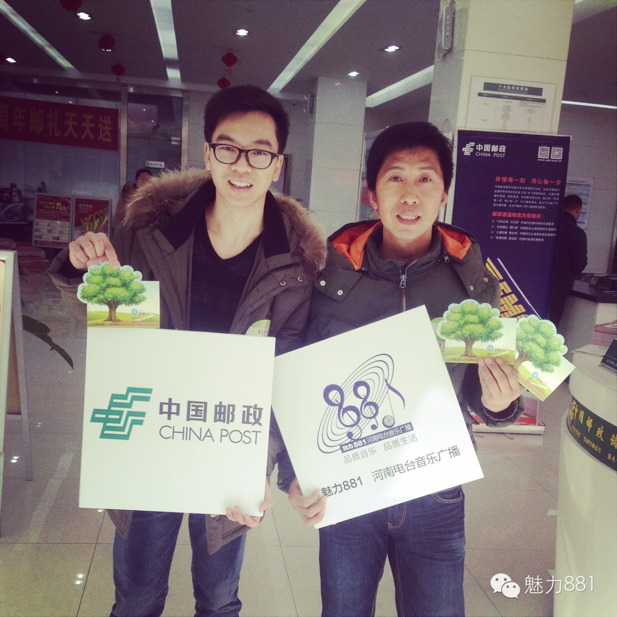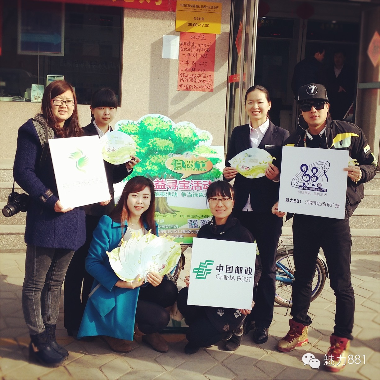 3月12日植樹節(jié),魅力881河南第一音樂廣播攜手鄭州郵政一同打造的“綠色尋寶大作戰(zhàn)”公益活動圓滿舉行!今天有四位DJ帶領(lǐng)四隊聽眾前往市區(qū)指定郵政網(wǎng)點,尋找本次活動限量定制的環(huán)保明信片。首先要為獲勝的小伙伴鼓掌,同時也要感謝所有參與本次活動的親們,你們都棒棒噠!本次公益活動的每一位參與者都是綠色環(huán)保小戰(zhàn)士,有你們在,綠城的樹一定會更綠,天一定會更藍!最后要特別感謝本次活動合作方鄭州郵政、綠博園的大力支持,再次感謝魅力881聽眾的參與!