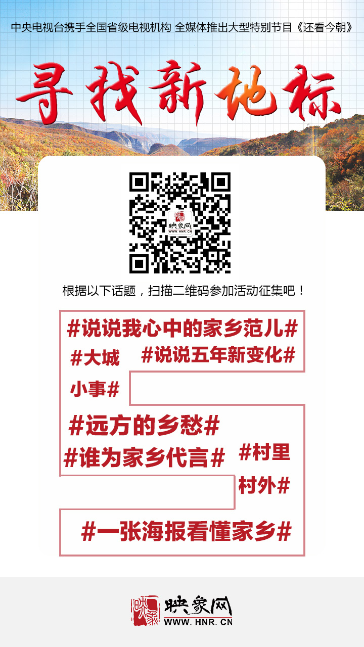 您對(duì)河南有著怎樣的理解?在您心中,河南是怎樣的一張海報(bào)?“還看今朝”四個(gè)字是這張海報(bào)里的文字元素,其他的由您來(lái)設(shè)計(jì)!可以是手繪,可以是動(dòng)漫……形式不限,創(chuàng)意無(wú)限。被選中的海報(bào)將呈現(xiàn)在中央電視臺(tái)新聞?lì)l道《還看今朝》節(jié)目的背景屏中,作為節(jié)目封面。
