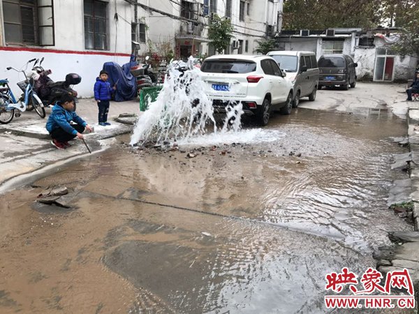 映象網(wǎng)快訊(記者 邱延波 文/圖)11月19日,鄭州桐淮小區(qū)南家屬院19號樓前,因地下自來水主管道爆管導(dǎo)致路面噴出2米多高的“噴泉”,白白浪費掉兩三個小時的自來水。一輛轎車壓住閥門井蓋導(dǎo)致無法關(guān)閉閥門,而車主在黃河邊,下午才能回來,工作人員只好把小區(qū)的總閥門關(guān)閉。19日上午9時許,桐柏路汝河路口東南角處的桐淮小區(qū)南院19號樓2門洞前的自來水地下管道爆管現(xiàn)場,小區(qū)水泥路邊爛個洞,噴出高高的水柱,小區(qū)道路上全是積水。