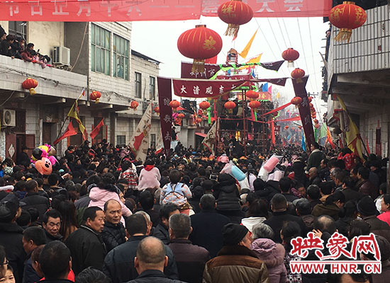 新鄭市觀音寺鎮(zhèn)太清村,新鄭、長(zhǎng)葛、禹州的三縣交界處。3月3日下午15時(shí)許,太清村的街上人山人海,水泄不通。各條街道上鑼鼓喧天,熱鬧非凡。多個(gè)舞獅團(tuán)隊(duì)開(kāi)始在高高樹(shù)起的架子上表演,地面上各種各樣的民間表演爭(zhēng)奇斗艷。