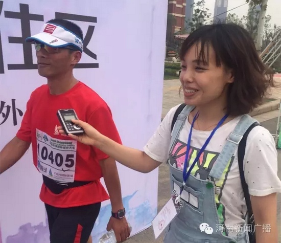 僅僅過了2小時20分,終點(diǎn)迎來第一位沖向終點(diǎn)的高先生,氣喘吁吁的他在接受我們采訪時依然腳步穩(wěn)健。