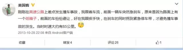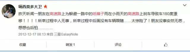 其實(shí)微博上關(guān)于高速公路上撞上紙箱子的事件,屢次發(fā)生: