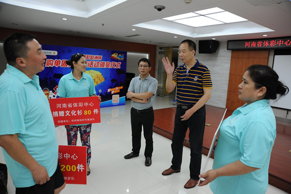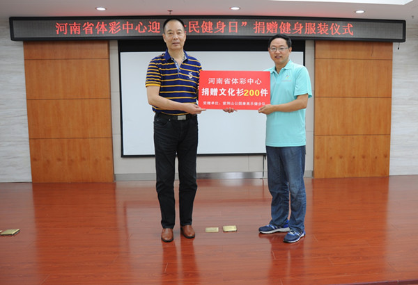 據(jù)河南省體彩中心主任孫和平介紹,中國(guó)體育彩票作為國(guó)家公益彩票,其發(fā)行宗旨是“來之于民 用之于民”,一直履行著支持全民健身這一光榮使命。去年是《意見》印發(fā)的第二年,河南體彩中心已開始落實(shí)該文件精神,向社會(huì)健身團(tuán)體捐贈(zèng)了3000件健身服裝,受到健身群體的歡迎和高度贊揚(yáng),取得了良好的社會(huì)效益。今年的捐贈(zèng)是河南體彩中心支持我省全民健身這一公益活動(dòng)的延續(xù),今后我們將嘗試擴(kuò)大捐贈(zèng)范圍,讓更多的健身群體在強(qiáng)身健體、重視體育、支持體育、參與體育的過程中,感受到中國(guó)體育彩票的關(guān)注和支持,讓更多的群眾在健身中受益。孫主任表示:河南體彩中心也希望通過持續(xù)和擴(kuò)大類似的公益活動(dòng),為我省的父老鄉(xiāng)親在強(qiáng)身健體、健康生活的道路上,做出河南體彩人積極的貢獻(xiàn)。今年我省的“全民健身日”主題活動(dòng)將在焦作舉行,各地市也會(huì)開展大規(guī)模的全民健身主題活動(dòng),預(yù)祝我省的全民健身主題活動(dòng)圓滿成功。