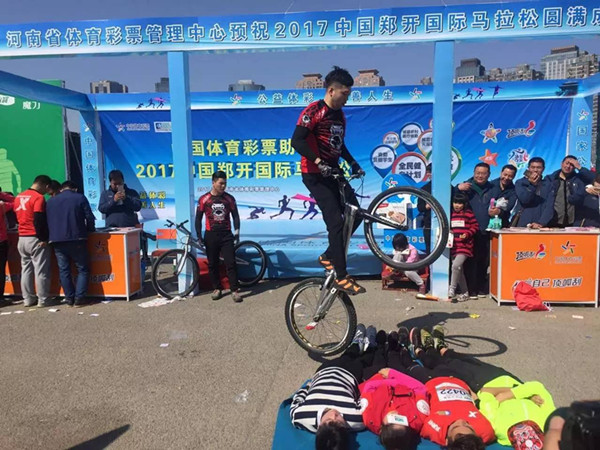 河南省體彩中心和鄭州東區(qū)分中心、鄭州西區(qū)分中心、開封分中心分別組織工作人員、體彩銷售員和彩民代表共280人,在鄭州和開封參加了小馬拉松的的比賽,向公眾傳遞河南體彩以實際行動熱心公益、參與和支持全民健身的公益形象。