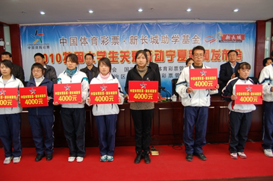 “中國(guó)體育彩票·新長(zhǎng)城助學(xué)”活動(dòng)是國(guó)家體彩中心自2005年起開(kāi)展的一項(xiàng)資助優(yōu)秀特困大學(xué)生的全國(guó)大型公益助學(xué)項(xiàng)目。這個(gè)項(xiàng)目為優(yōu)秀特困大學(xué)生解了燃眉之急,為他們面對(duì)今后的生活增添了勇氣和動(dòng)力。一些受助大學(xué)生現(xiàn)已走出校門(mén),走上不同的工作崗位,用實(shí)際行動(dòng)回報(bào)社會(huì)。截至2017年,“體彩·新長(zhǎng)城”足跡遍布祖國(guó)大地,受益優(yōu)秀特困大學(xué)生達(dá)2091人,累計(jì)投入公益金達(dá)903.88萬(wàn)元。