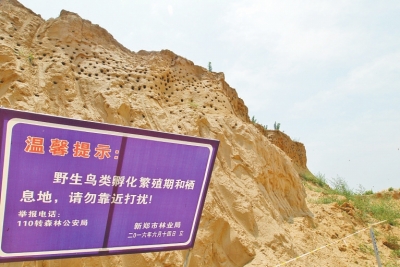 為保護(hù)鳥兒安全度過繁育期,河南省森林公安局、河南省野生鳥類觀察學(xué)會(huì)在土堆前立了一塊警示牌,上書“鳥類棲息地,禁止靠近”,呼吁社會(huì)善待候鳥。而新鄭市林業(yè)局林政科有關(guān)人員在接受記者采訪時(shí)亦稱:“我們只要一接到群眾舉報(bào),立即會(huì)同公安機(jī)關(guān),盡快把這些燕子集中育雛地保護(hù)起來,除告知施工單位停工外,還在一定區(qū)域內(nèi)拉起警戒線,禁止無關(guān)人員驚擾燕子孵卵育雛,今年新鄭市總共有三處燕子育雛地被集中保護(hù),新鄭市保護(hù)崖沙燕的善舉曾得到過中央級(jí)媒體的表揚(yáng),接下來我們會(huì)再接再厲,爭(zhēng)取做得更好?!?/p>