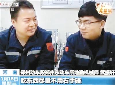 春運(yùn)路上,您知道是誰(shuí)在保障著列車衛(wèi)生間的通暢,給大家營(yíng)造一個(gè)舒適的如廁環(huán)境嗎?您的一些不經(jīng)意的舉動(dòng)又會(huì)產(chǎn)生什么影響呢?央視新春走基層欄目,昨天報(bào)道了鄭州動(dòng)車段鄭州東動(dòng)車所一群負(fù)責(zé)維修高鐵衛(wèi)生間故障的90后小伙子,他們也被同事稱為“掏糞男孩”。