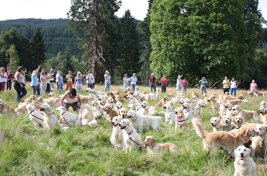 金毛犬,又名金毛尋回犬(Golden Retriever),其友好溫順的個(gè)性深得人們喜愛(ài),在全球累積了不少“金毛粉絲”。據(jù)英國(guó)《每日郵報(bào)》8月13日?qǐng)?bào)道,英國(guó)北部蘇格蘭的金毛俱樂(lè)部在上個(gè)月舉辦了第三場(chǎng)世界級(jí)的金毛犬聚會(huì),邀請(qǐng)全世界的金毛飼養(yǎng)者帶著他們可愛(ài)的寵物——金毛犬,前來(lái)共享這一歡樂(lè)的時(shí)刻。而最終參加這個(gè)聚會(huì)的,有222只金毛犬。