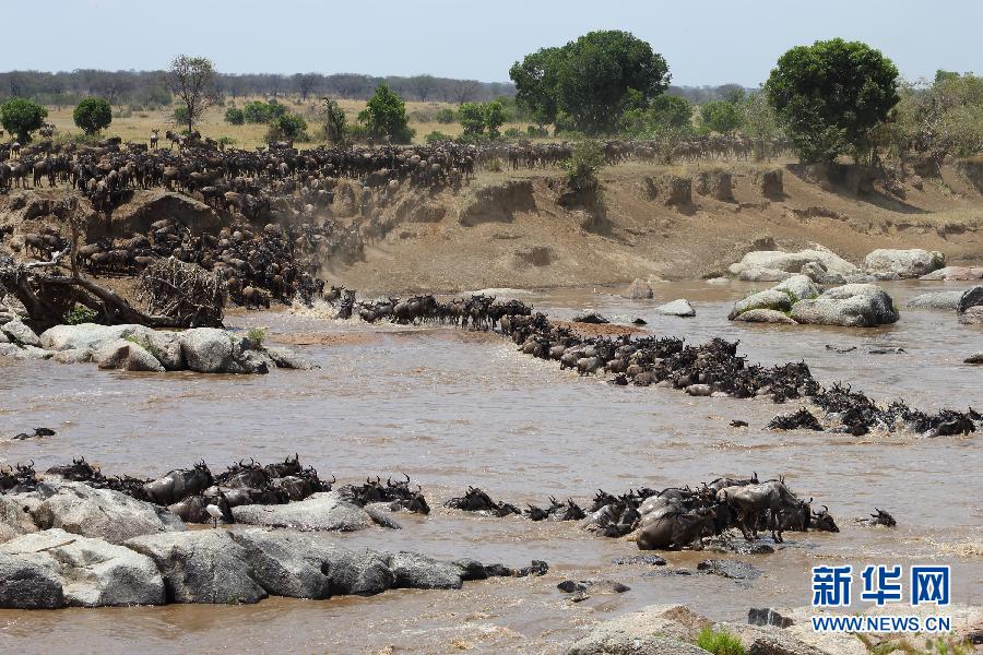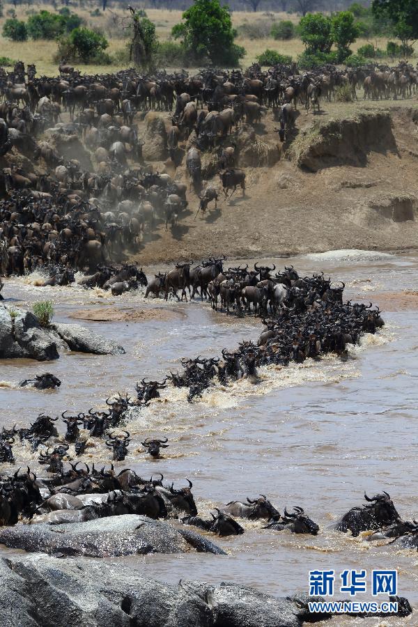 這是8月17日在坦桑尼亞塞倫蓋蒂國(guó)家公園內(nèi)拍攝的角馬遷徙隊(duì)伍。每年7月至9月是坦桑尼亞的旱季,為了追逐水源和青草,以角馬和斑馬為主的數(shù)以百萬計(jì)的食草動(dòng)物從塞倫蓋蒂向肯尼亞馬賽馬拉遷徙。這場(chǎng)“地球上最壯觀的動(dòng)物大遷徙”全程超過1000公里,動(dòng)物在往返途中需兩次渡過鱷魚出沒、危機(jī)重重的馬拉河。新華社記者張平攝