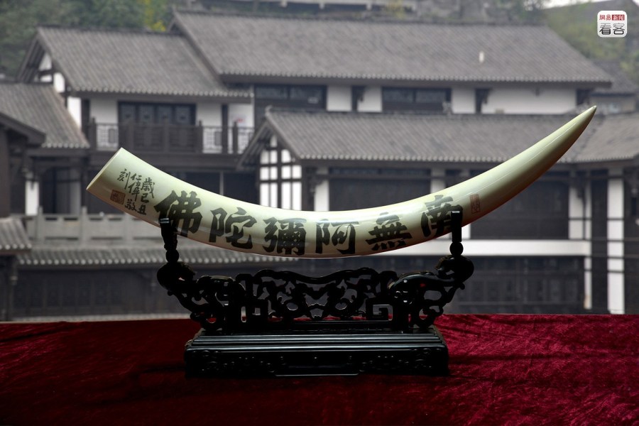 不斷上升的需求驅(qū)動(dòng)象牙價(jià)格的上漲,反過來(lái)增加了象牙作為資產(chǎn)以保值收藏的吸引力,使象牙的灰色市場(chǎng)不斷運(yùn)轉(zhuǎn)。圖為2012年4月6日,重慶,第五屆中國(guó)工藝品、禮品及家居飾品博覽會(huì)上,一件長(zhǎng)1.1米刻有《金剛經(jīng)》等80部經(jīng)文的象牙微雕作品被估價(jià)千萬(wàn)元以上。CFP