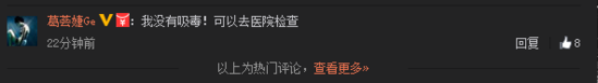 微博發(fā)出后,有網(wǎng)友問葛薈婕是否吸毒了,葛薈婕評(píng)論中回復(fù)“我沒有吸毒!可以去醫(yī)院檢查”。