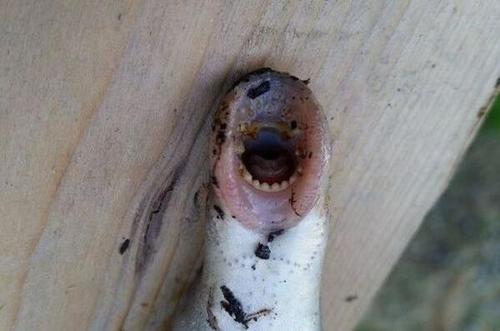 只見這條形似鰻魚的生物正張著圓圓的大嘴,里面布滿了鋒利的牙齒,頭部側(cè)面均勻分布著七個(gè)小孔。莫非這是什么新物種?這樣想著,男子試圖將它捉住。