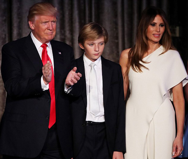 國(guó)際在線專稿:據(jù)英國(guó)《每日郵報(bào)》11月20日?qǐng)?bào)道,美國(guó)新當(dāng)選總統(tǒng)特朗普日前表示,自己將于明年1月20日入住白宮,但妻子梅拉尼婭和10歲的小兒子巴倫要繼續(xù)住在紐約的特朗普大廈,直到明年6月巴倫本學(xué)年學(xué)業(yè)結(jié)束。此番言論卻惹惱了紐約當(dāng)?shù)厥忻瘢麄儞?dān)心安檢、封路等措施會(huì)更加惡化城市的交通狀況。
