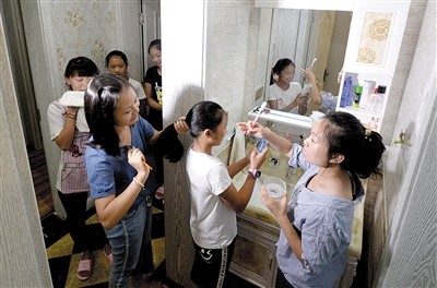 15分鐘的總結(jié)會(huì)很快結(jié)束,孩子們各自洗漱后去房間就寢。記者看到,每個(gè)房間要住6個(gè)人,除了床鋪上可睡下4個(gè)人外,剩下的兩個(gè)男生打地鋪,兩個(gè)女生則睡在飄窗上。