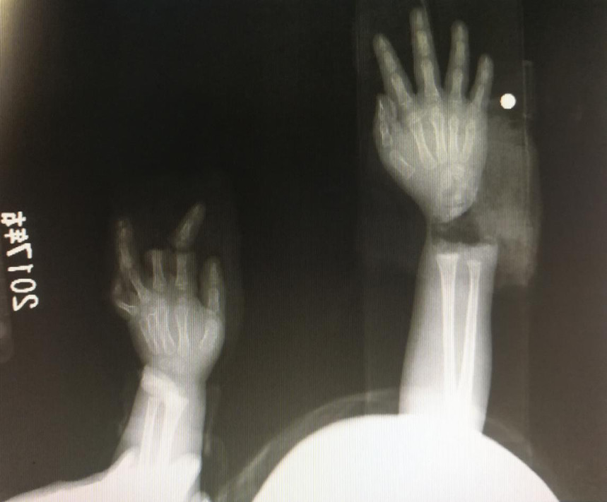 “急診在哪,急診在哪”,伴隨著一聲聲急促的問詢,一位年輕女士抱著渾身是血的小孩疾步前往急診室,懷里的小孩在疲憊與疼痛的交織下,時睡時醒。鑒于小孩的情況,急診醫(yī)生迅速安排給小孩拍了X光片,影像片結果顯示小孩左手手腕完全離斷,右手中、食指離斷,距離事發(fā)時間已經(jīng)3個多小時,需盡快安排手術。
