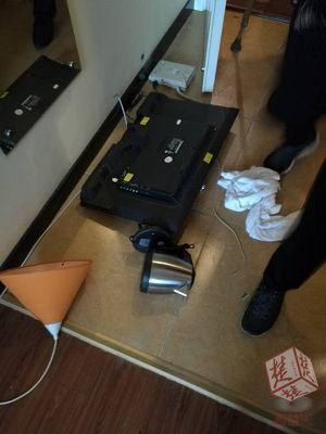 無奈,酒店工作人員只好用樓層房卡將6038號(hào)房打開。打開門,眾人驚呆了!一個(gè)沒穿上衣的小伙子正在玩手機(jī),房?jī)?nèi)的電話機(jī)、電水壺、臺(tái)燈、電視機(jī)都被砸了,甚至連床板都拆了……