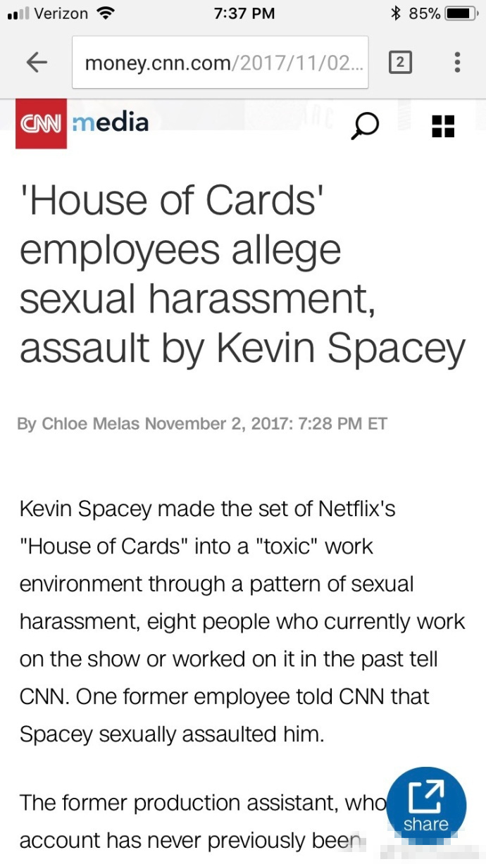 從砍劇到第六季停拍,凱文·史派西性騷擾事件給美劇《紙牌屋》帶來(lái)了不小的風(fēng)波。而據(jù)CNN今日?qǐng)?bào)道稱(chēng),目前有8名《紙牌屋》現(xiàn)員工及前員工向他們控訴凱文·史派西曾對(duì)自己實(shí)施性騷擾,其中一名甚至聲稱(chēng)史派西性侵了他。這8名員工由于害怕講出這件事會(huì)對(duì)自己的事業(yè)產(chǎn)生影響,采用了匿名的方式向CNN揭發(fā)這件事情,他們稱(chēng)史派西已經(jīng)是個(gè)慣犯,經(jīng)常對(duì)年輕男性有性騷擾行為,包括在對(duì)方不情愿的情況下觸摸、說(shuō)一些粗魯?shù)难哉Z(yǔ)等。