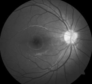 右眼黃斑色素紊亂瘢痕。本報(bào)記者 李惺 攝