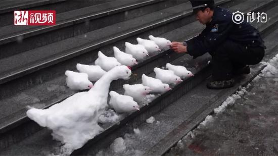 原標(biāo)題:下雪后,這位保安堆了個動物園!萌得心肝兒都化了…
