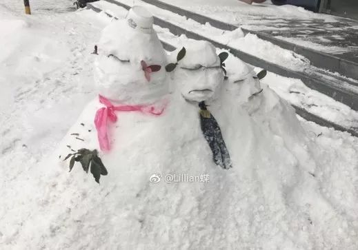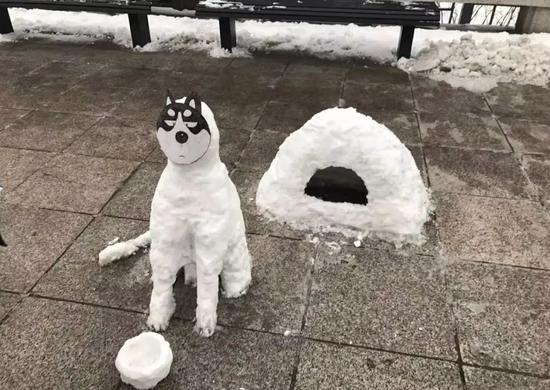 保安下雪后堆了個"動物園" 萌得心都化了