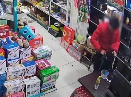 這是2017年12月6號,這家煙酒店里的監(jiān)控視頻,這名身著警服的男子在店里四處轉(zhuǎn)悠,事后店主發(fā)現(xiàn)錢少了。