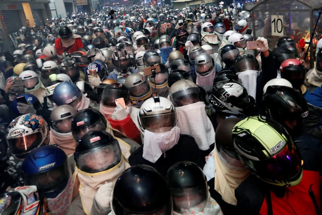 臺(tái)灣十萬(wàn)人戴安全頭盔觀看“鹽水蜂炮”