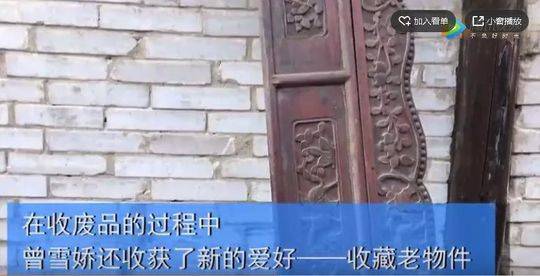 在收廢品的過程中,曾雪嬌也會同時(shí)收藏一些老物件。從剛?cè)胄械浆F(xiàn)在,就收到明清的銅錢,還有復(fù)古的煙斗,一顆釘子都沒有的雕花木門等各式各樣的小物件,“就像尋寶一樣,你會在這個(gè)過程中發(fā)現(xiàn)驚喜,并且樂此不?!?/p>