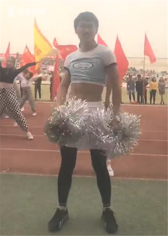 看看新聞Knews采訪到了該校另一支啦啦隊的領(lǐng)隊趙同學(xué),她向記者介紹,這名男生第一場跳的時候連打底褲都沒穿,讓她有些震驚,不過后來幾場都穿上了黑色的褲子。趙同學(xué)覺得,這也是體育精神的一種體現(xiàn),很對男生都羞于參加這樣的活動,更別說穿著這樣的服裝了,這位男生勇氣可嘉。