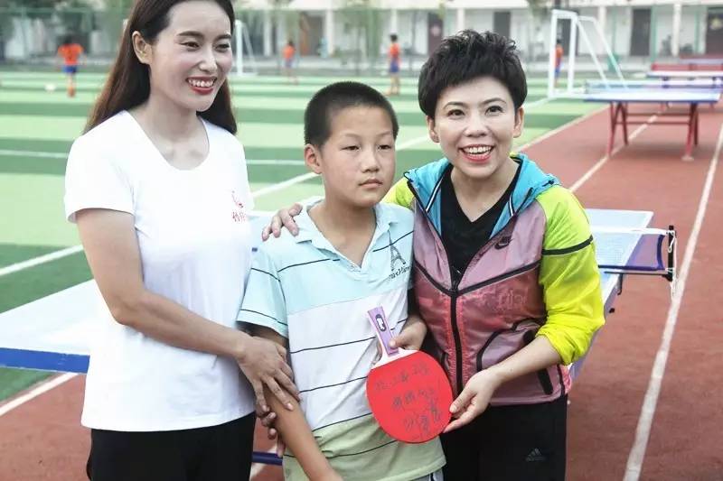 鄧亞萍與小隊(duì)長切磋球技 關(guān)注體育教育基礎(chǔ)發(fā)展