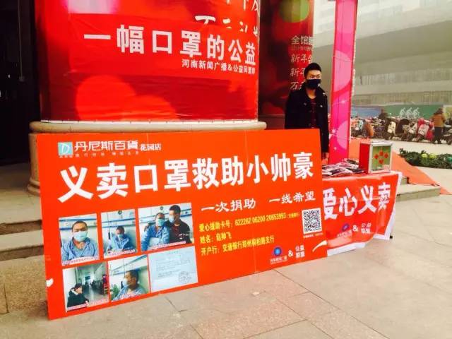 河南新聞廣播持續(xù)關(guān)注16歲白血病少年趙帥豪籌集50萬(wàn)元移植費(fèi)的進(jìn)展。由我們和公益同盟一起發(fā)起的口罩義賣活動(dòng)仍在進(jìn)行中。在花園路丹尼斯義賣點(diǎn),王女士帶著自己12歲的兒子柳義獻(xiàn)上了一份愛心。