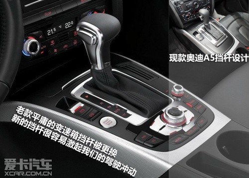 雖然新款奧迪A5的中控臺布局沒有進(jìn)行新的設(shè)計,但是新車采用了全新設(shè)計的儀表盤,一體化設(shè)計的儀表與內(nèi)飾的融合更加緊密。另外老款平庸的變速箱擋桿被更換,新的擋桿很容易激起我們的駕駛沖動,另外新車在MMI操作面板的很多細(xì)節(jié)上也有變化。