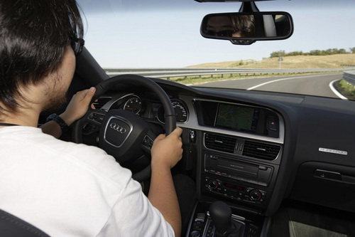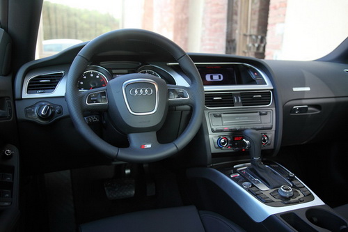 坐上駕駛座后,我再次試圖尋找它與Coupe款的不同之處,但最終得出的結(jié)論是,除了左側(cè)車門上的四個(gè)車窗開關(guān)按鈕外(Coupe款只有兩個(gè)),再?zèng)]有什么特征能讓我馬上意識(shí)到正坐在一輛A5 Sportback里了。盡管奧迪將A5 Sportback視為一款開創(chuàng)新天地的新車型來(lái)進(jìn)行定位,但相信設(shè)計(jì)師的思路也是沒有必要為它單獨(dú)設(shè)計(jì)一套內(nèi)飾方案,所以在我坐進(jìn)駕駛座的一刻,滿眼再熟悉不過的奧迪元素以及A5車系特有的低矮坐姿讓我意識(shí)到這就是奧迪,這就是A5。