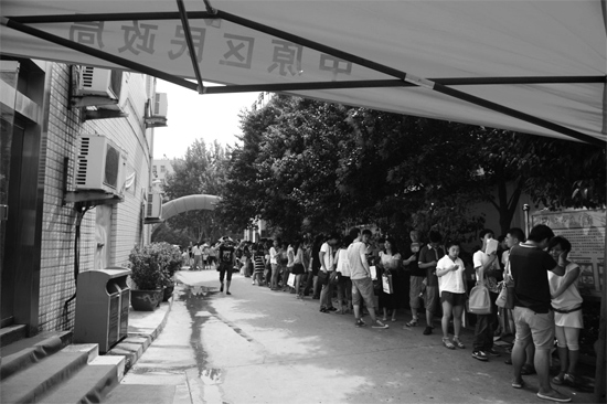 昨日是中國傳統(tǒng)“七夕”節(jié),新人們冒酷暑排隊領“紅本本”。