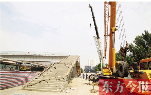 要求8個(gè)小時(shí)內(nèi)將天橋主體拆除完畢。