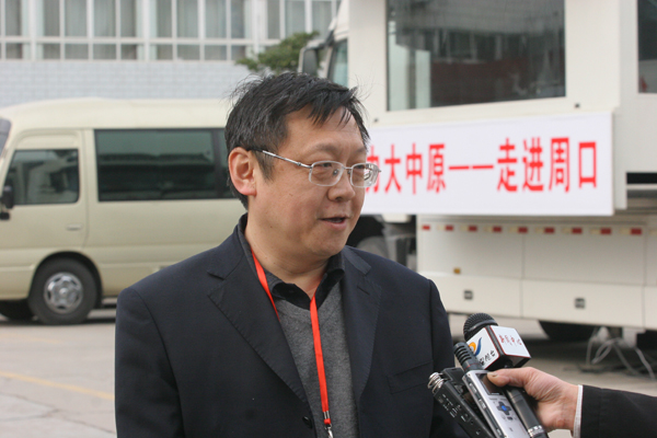河南人民廣播電臺(tái)總編輯張大寶接受周口當(dāng)?shù)孛襟w采訪