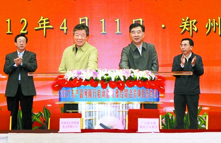 中共中央政治局委員、廣東省委書記汪洋與省委書記、省人大常委會(huì)主任盧展工共同啟動(dòng)廣東產(chǎn)品河南行活動(dòng)。河南日?qǐng)?bào)記者 郭 宇 董 亮 攝