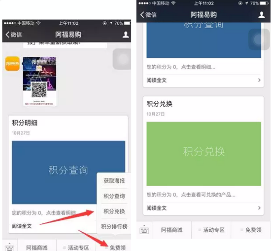 2.在阿福易購(gòu)微商城中購(gòu)物一單可獲得十積分,原有積分可繼續(xù)使用。